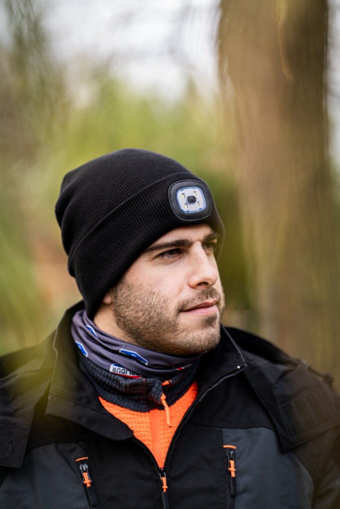 Il est équipé d’une lampe LED rechargeable offrant jusqu’à 150 lumens et une autonomie de 2 à 4 heures. Son tricot de qualité supérieure assure quant à lui un confort thermique optimal, même par grand froid.