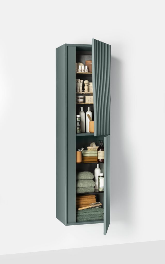 Enfin, la colonne Ecume 2 portes complète la ligne. Elle s’associe parfaitement au meuble avec ses dimensions généreuses en profondeur et en largeur, et apporte une touche de rangement supplémentaire en toute simplicité.