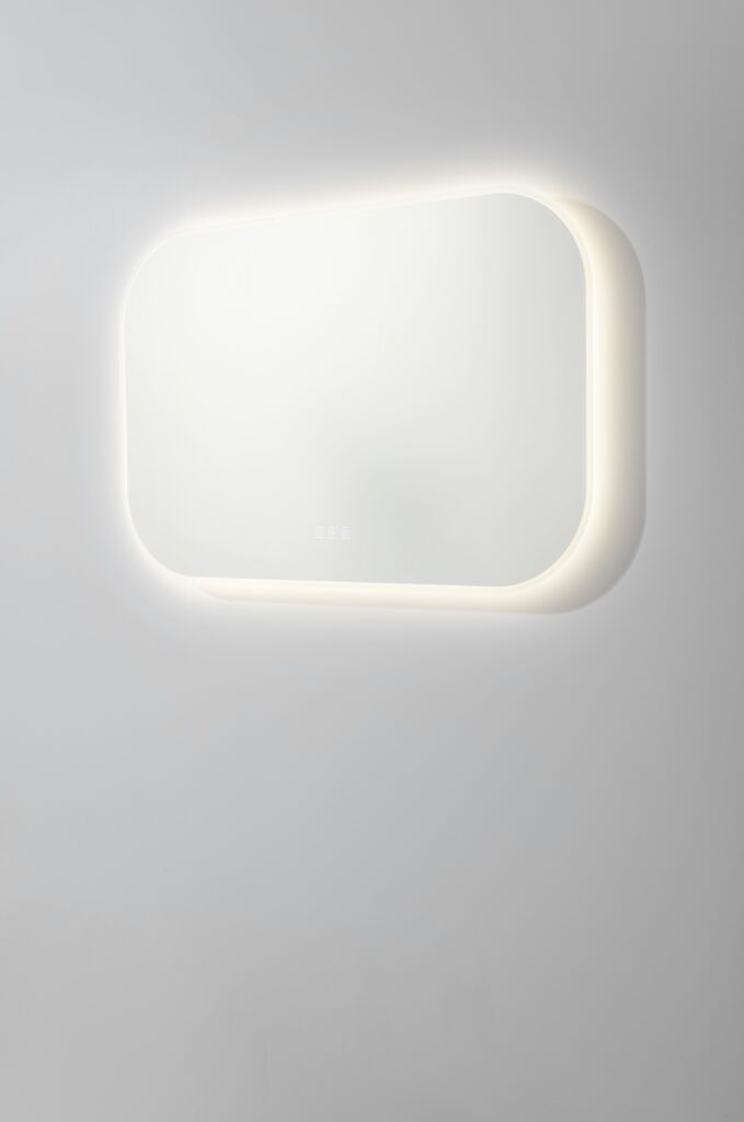 Le miroir classique, d’une hauteur de 69 cm, est disponible en largeurs 60, 80, 100 et 120 cm et s’harmonise parfaitement avec les meubles. Le miroir lumineux Square, d’une hauteur de 60 cm, est lui aussi proposé dans ces mêmes largeurs. Il intègre un éclairage LED interchangeable, avec commandes sensitives pour l’allumage, la variation d’intensité et la fonction antibuée.
