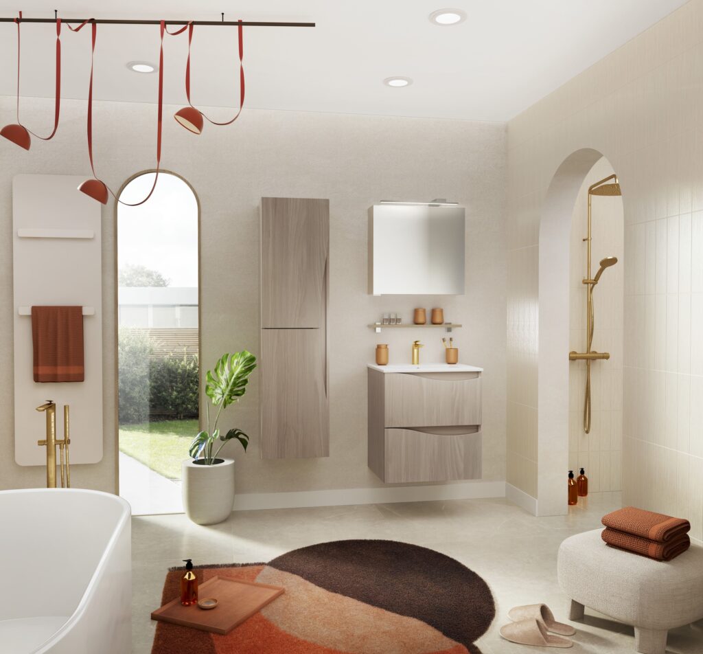 La ligne de meubles de salle de bains Ecume a été pensée pour s’intégrer facilement dans toutes les configurations, des espaces limités aux salles de bains plus spacieuses. Avec ses différentes dimensions de meubles, elle offre une grande liberté d’agencement pour tous les projets.