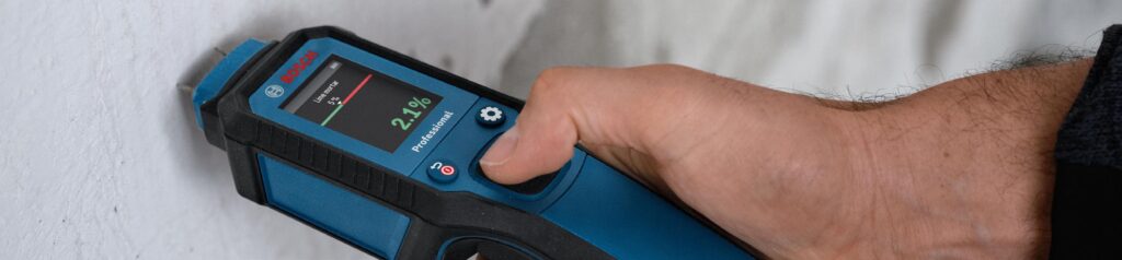 Pour des mesures rapides du taux d’humidité, les humidimètres à broches GMP 1-13 Professional et GMP 2-15 Professional sont des alliés précieux. Ils aident à identifier les sources d’humidité à l’origine des moisissures ou de dégâts des eaux et à évaluer l’humidité dans les matériaux (bois, plâtre, béton…), afin d’assurer des conditions optimales lors des travaux (peinture, pose de papier peint, de parquet…).