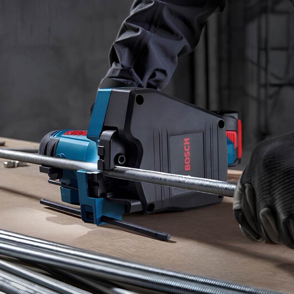 Bosch Professional a conçu ce coupe-tige sans-fil pour vous permettre de réaliser des coupes perpendiculaires en série, sans effort et plus rapidement qu’avec une meuleuse.
